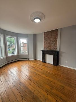 Come see this recently renovated 2-bedroom apartment. Featuring sunny interiors, LED lighting throughout, and an updated kitchen and bathroom. Stylish features include modern lighting and exposed brick walls. Laundry machines are included. There is an extra bonus room great for an in home office or extra storage space.