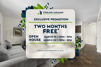 Rent Special available! Limited Time Offer | Enjoy 2 Months FREE on a 14-Month Lease!* Limited Time Offer | Enjoy 2 Months FREE on a 14-Month Lease!* *Pricing, availability, and incentives are subject to change. Conditions apply. Suite features may vary. Images and virtual tours may not reflect actual suite finishes. E. & O.E.