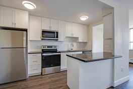 - Suites feature an open-concept kitchen with modern finishes including chrome accents, breakfast bars, laminate countertops and tiled backsplash
