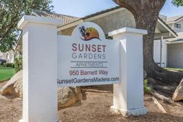 Sunset Gardens Apartment Homes 950 Barnett Way is a rental apartment building with 4 floorplans available. It is located in Madera. It has apartment amenities including dishwasher, and in-unit laundry. It has building amenities including garage parking. Cats and dogs are allowed, making it a pet-friendly building.