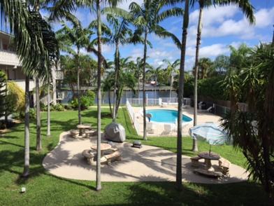 Spacious 2/1.5 with tile throughout Granite and new cabinets in kitchen with stainless steel appliances, dishwasher, built-in microwave. Granite and new cabinets in both bathrooms. New tub in master bathroom. Walk-in closets in both bedrooms. Impact windows. Central A/C. Sparkling pool with bar-b-que area for you and your guests. Waterfront property with dock to launch your kayaks.