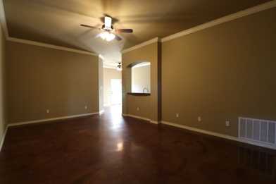 Scored and Stained Concrete Floors throughout – no carpet