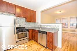This vintage kitchen features hardwood throughout and on site laundry. Pet friendly. Close to CTA, shopping, dining and nightlife.