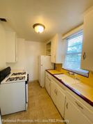 Off of the dining nook, you'll find your galley-style kitchen. It includes a refrigerator and gas range stove. Your kitchen also has a window over the sink for natural lighting and tons of cabinets.