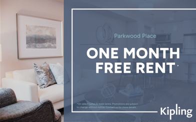 Receive 1 Month Free Rent!*The apartments at Parkwood Place are located at the corner of Paisley Road and Imperial Road South in Guelph's desirable west end, just 1 minute to Margaret Greene Park and the West End Community Centre, 5 minutes to Earl Brimblecombe Park and nearby schools, and also 5 minutes to Costco and other shopping destinations. This pet-friendly, sustainable mid-rise community combines modern suite design with lifestyle-enhancing amenities:One and two-bedroom layouts with luxury vinyl flooring, stainless-steel professional-grade appliances, quartz countertops, chrome faucets, designer cabinetryBright, open-concept living spaces, serene bedrooms, and elegant bathroomsIn-suite laundry and private balconiesCommunity features:100 % solar-powered common-area systems and EV-charging stationsElegant party room with fully equipped kitchen for entertainingOutdoor community garden and off-leash dog parkOn-site fitness centreLocated in a sought-after neighborhood at the corner of Paisley and Imperial, Parkwood Place sits amid Guelph's west end—within easy reach of transit, shops, parks, schools, and major routes.*On a 13-month lease. Promotions are subject to change without notice. Contact us for more details. Offer for new residents only