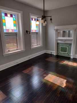 Stately and grand 3 bedroom apartment in an old limestone mansion, calling all old world lovers of Victorian style and charm. Beautiful architectural details and moldings. Classic and magnificent original stained glass windows, solid real hardwood floors, a faux fireplace, an original gone with the wind style staircase, and an Updated semi-modern bathroom. Bedrooms are unique and full of color, hope you like dramatic and vibrant colors. Located on an old millionaires row with many historic and restored homes. Live delightful on duke for $1,945 + some utilities Landlord pays WATER/SEWER/TRASH shared use of yard.