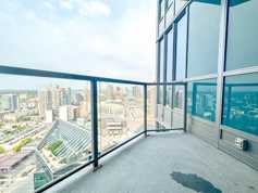 - Showcases a private balcony providing incredible, breathtaking views of the city skyline