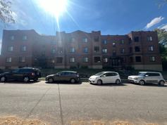 Unit 305 offers a spacious third-floor two-bedroom layout with an inviting, open-concept design. Natural light pours into the living and kitchen area, highlighting the crisp white cabinetry, sophisticated gold hardware, quartz countertops, and stainless steel appliances — a modern space that feels both fresh and refined.