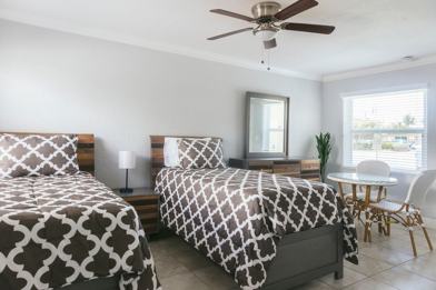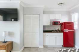 Everything is BRAND NEW in this fully furnished studio suite with two twin beds. The Palm Beach Flamingo is ideally located on the border of West Palm Beach and Lake Worth Beach directly between I-95 and the waterfront near public transportation and surrounded by retail plazas. All units have been completely renovated with a mid-century modern retro look, with red Galanz refrigerators and microwaves. All units come with 4K UHD televisions and high speed Wi-Fi from dedicated fiber optic internet with new air conditioning and hurricane impact windows throughout. There is a courtyard with a picnic table and BBQ.