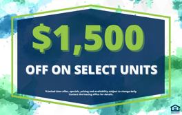 Rent Special available! $1,500 off on select units! *Restrictions apply. Specials, pricing, and availability subject to change daily. Contact the leasing office for details.