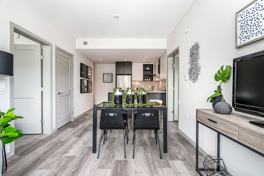 Connect to a better way of life at The Saint George. A multi-faceted community in North Vancouver, British Columbia, our homes give residents the best of everything. We offer an array of amenities including in-suite laundry, in-floor radiant heating, and stainless-steel appliances. There is also a generous social room and garden patio space. Secure underground parking and dedicated EV charger parking spaces available for rent with unlimited charging. The adjacent urban agriculture space and children's' play area add to this vibrant community.