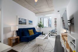 Opulence @ 400 Wellington. Walk Score 98/ Transit 100, Bright Open Concept & Functional Layout. 9Ft Ceilings, Hardwood Floor W/ Bay Window, Breakfast Bar. Oversized Master Retreat W/ Walk In Closet. Ensuite Laundry Included.