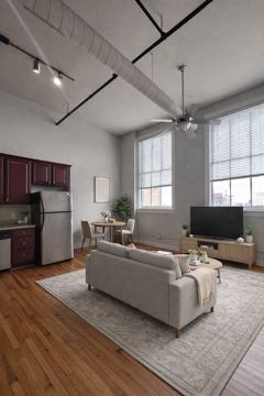Located in the historic Hancock Building, this unit blends charm and history with updated downtown living. Complete with large windows that provide plenty of natural light, charming hardwood floors, and lofted ceilings, this one bedroom is open and spacious.