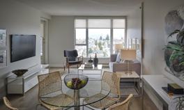 Bright and modern Vancouver apartment rentals, each with its own spacious patio or balcony to extend living outdoors. Kitchens feature full-size appliances, including dishwasher.