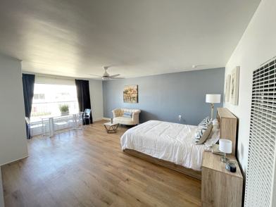 BEAUTIFULLY REMODELED, 2nd floor, designer artist loft studio located in the heart of Torrance. Fully furnished with television & household items. Remodeled kitchen with granite counters, marble backsplash, stainless steel appliances, shaker cabinets, gold hardware and wood floors. Ceiling fan, wall heater, HUGE front window for lots of light. 1 PRIVATE garage space. Professional management and maintenance service. Tenant pays for all utilities including water, sewer, trash. Schedule a tour of your new home today!