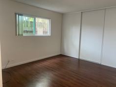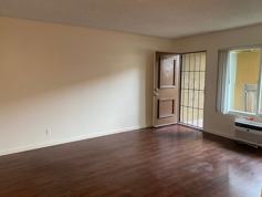 This spacious, ground floor, one-bedroom apartment with a private patio has laminate flooring throughout, recessed lighting, ceiling fans in every room, and AC.