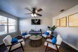 All our floor plans are 800 sq ft and feature two bedrooms and two bathrooms. Both bedrooms stay cool with large windows that also allow for plenty of natural light. Bifold doors allow our residents to gain full access to every inch of the bedroom closets. Hanging space is plentiful and e..