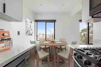 Inspired by midcentury Modernism architecture, these newly renovated rental homes are just minutes to the diverse Koreatown, the prestigious University of Southern California (USC), hip Echo Park and Silverlake, and thriving Downtown Los Angeles. 230 South Carondelet Street, located in the heart of central Los Angeles adjacent to the Historic Filipinotown, features a nine-unit, two-story low-rise building with enhanced modern architecture and a gray cement shade base and accents of earth tone colors.