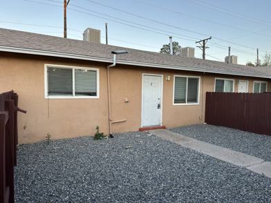 Awesome, renovated 4-plex. Very private courtyard entry with xeric landscaping and plenty of room for a pet and outdoor living space. You'll love the thermal windows, quality luxury vinyl plank flooring throughout, full size stacked washer / dryers, the awesome closet, space, secured outdoor storage spaces, and the new appliances and fixtures throughout. Very convenient location in up and coming south UNM / Edgecrest neighborhood. Close to Burton Park, UNM, CNM, Kirtland Air Force Base, and I-25. *Some Photos may be of similar units in the community.*