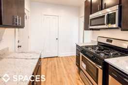 This unit features a granite kitchen, stainless steel appliances, dishwasher, separate dining area, hardwood floors throughout, and newer bathroom. Heat included. Laundry in building.