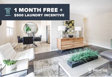 Rent Special available! 1 Month Free + $500 Laundry Incentive Offer available on select suites when you sign a 13-month lease by April 1, 2026. Select suites apply.