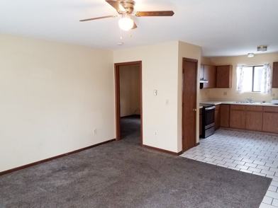 This spacious 2 bedroom apartment has a large open living / kitchen space. South side location, close to several large employers; with off-street parking and on-site laundry.
