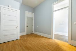 The spacious bedroom provides a serene escape with privacy. Two closets offer abundant storage. The bathroom has been tastefully updated with a huge bathtub, and subway tile accents.