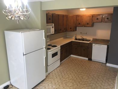 Cute 3 bed 1.5 bath duplex. The spacious kitchen has linoleum flooring and all white appliances including dishwasher and microwave. Sliding doors from the dining room let in tons of natural light and provide quick access to the yard for those summer BBQ’s.