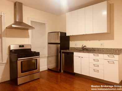 Bright eat-in kitchen with stainless steel appliances, including dishwasher. Good size bedrooms and a sunny living room. Hardwood floors throughout. Large back porch. In unit washer and dryer.