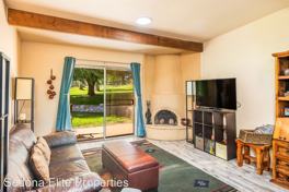 Furnished, 1 Month Minimum - 2BR/1.75BA townhouse located in the heart of The Village of Oak Creek right on the Oak Creek Golf Course with Red Rock views in the Village of Oak Creek. Built in 1979, this unit has seen updates through including two new bathrooms with stunning tile work; updated flooring; an updated kitchen. The living room features gorgeous fireplace for decorative purposes that open into a beautiful dining space. Steps out onto the large covered patio which offers incredible red rock views and a full panorama of the golf course. Two parking spaces, uncovered, and privately reserved for the unit.