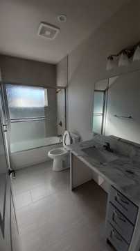 The kitchen is equipped with a gas stove top, built-in microwave, and dishwasher, making meal preparation luxurious. Additionally, the apartment includes laundry hookups, allowing for convenient in-unit laundry.
