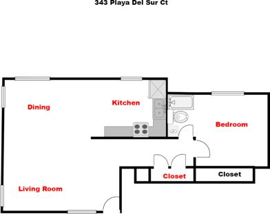 Completely renovated bottom floor unit in La Jolla with white cabinets, new tile flooring in kitchen. Private bedroom in the back of the unit with mirrored closet along one wall. Bathroom with silver-colored fixtures, white countertops and new sink and shower. New tile flooring throughout the unit. Only a block from the ocean, and within walking distance to stores and restaurants in the area.
