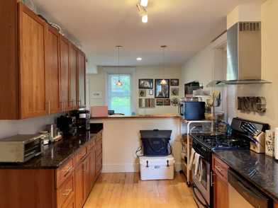 True "Condo Quality" 1350 SF Duplex with 2 spacious BR's and 2.5 BA's in Jeffrey's Point, Available 9/1! Custom Crown molding and fine detail throughout. Insets and other custom lighting. New thermal windows, with well-insulated walls and ceilings. 3.5" wide Canadian maple floors. Central AC and hydronic heated floors. Huge bright kitchen with custom cherry cabinets and full 3cm granite counters, gas cooking with stainless vent hood. W/D in-unit for sale, also common laundry in building. Private covered deck overlooks spacious landscaped garden!