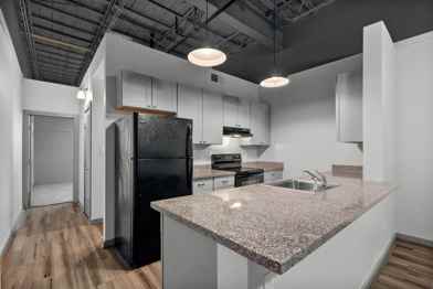 This vintage building was originally built for Culpepper Furniture Company in the 1950s. In the 1980s it became Hefner's Fine Gifts & China. Recently it was transformed into an upscale rental loft apartment building, known as 612 Lofts. 612 Lofts offers an out-of-the-ordinary living experience with a select mix of 1-bedrooms and 2-bedrooms. Lofts have XL bedrooms, 12-feet-tall exposed ceilings, granite countertops, and Frigidaire appliances. All lofts are located on the second floor, so neighbor noise from below or above is eliminated. Assigned garage parking is provided with each loft. 612 Lofts is located at 612 W. Texas Avenue, across from Lee College and next to Baytown's Historic Oak Tree. Floor plans may vary.