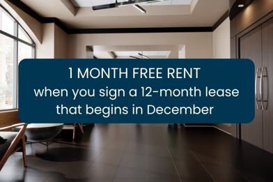 Now offering one-month free when you sign a 12-month lease that begins in December.