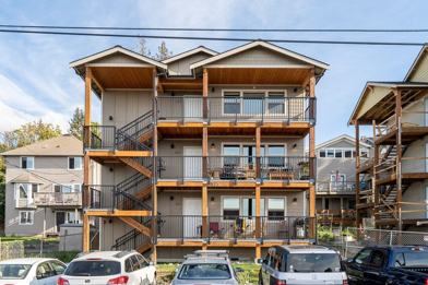 DESCRIPTION: Just a quick walk from WWU and downtown. This building includes 3 units, each with 3 beds and 2 baths as well as large common spaces. All include hard floors, a double vanity bathroom in addition to a second bathroom and in unit laundry. Private off street parking makes living this close to WWU a dream! Enjoy the beautiful view of Bellingham Bay from your spacious deck. Video is of unit #301, all have similar floor plan