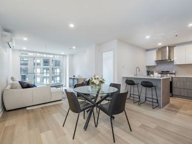 Highly practical commodities Each building creates a synergy between the beautiful, practical and pleasant. With these superb apartments, you get solid construction, an incredible layout, and access to so many services. The project includes spaces on the roof of Phase 5, such as a terrace with BBQ, a multipurpose room, a pool and a gym that give you a breathtaking panoramic view. Multipurpose room Need a space for a meeting, a party with friends, or a yoga workout? The large common room is a great extra amenity, just steps from your home. Sky gym H1 also has a private gym for residents with state-of-the-art equipment and practical accessories. This workout space gives you a panoramic view while you sweat off some stress or build some muscle. And you'll feel a new sense of balance in this space on top of the trees and below the clouds. Pool A relaxing pastime and complete exercise, swimming is beneficial no matter how fit you are. The rooftop swimming pool gives you an unparalleled relaxation experience because it combines the naturally soothing benefits of water with the pleasure of the sun on your face and the breeze on your skin. Look up to the horizon for a glimpse of Lac Saint-Louis while listening to nature sounds in this urban oasis. Terrace Located right next to the pool, the large shared terrace is a great place to take in a scenic view or socialize with friends. Sip a coffee or cocktail or get your BBQ fix. And there's nothing like a sun- or star-filled sky to make your moments all the more special. Residents can easily hop down to the car wash right on the property. Elevator You also don't need to worry about dragging groceries and packages up flights of stairs. When you come home with your hands full, the elevator is there to take you up to your apartment, or even to the rooftop terrace to relax after a long day.