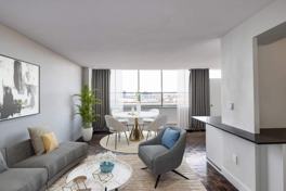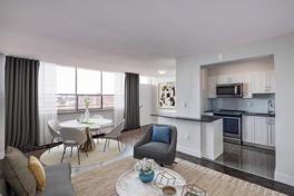 Residents enjoy spacious studio, 1 bedroom, and 2 bedroom suite designs with re-finished hardwood flooring in the living rooms and bedrooms. Kitchens feature stone-like ceramic tile and are equipped with elegant white cabinetry, self-closing drawers, and four stainless-steel appliances.