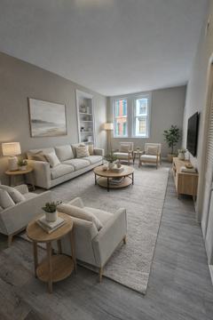 Bright living room and bedroom with large windows