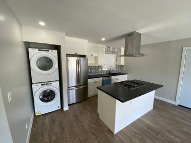 * Remodeled gourmet kitchen with luxury quartz countertops and brand new stainless steel appliances (dishwasher, bottom freezer refrigerator, gas range)