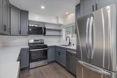 This recently remodeled and spacious downstairs 2 bed / 2 bath apartment home includes stainless steel kitchen appliances, one assigned parking spot and free laundry. Rent $2065, security deposit $750. One small pet will be considered. Monthly Pet Rent is $45 per month. Rental application fee $35 her adult applicant. Resident pays for electric and internet. Rent includes gas, water, sewer, trash, landscape and pool maintenance. Renter's Insurance required.