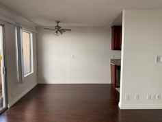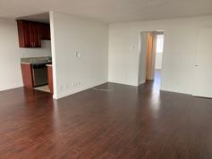 - Laminate wood floor throughout apartment with the exception of tile in kitchen, bathrooms, and entryway.