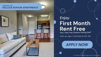 Now’s the perfect time to move into Hollick! Enjoy an incredible limited-time promotion —FREE parking + 1st month's rent! Don’t miss out.