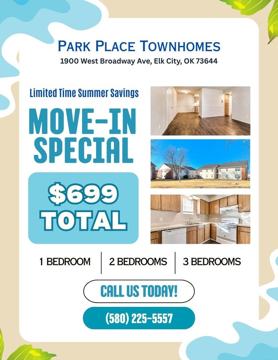 We have great move-in specials! Call today more more information! (580) 225-5557