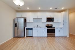 - Refined Interiors: Each studio boasts tasteful shades, warm can lighting, a full-size kitchen with ample cabinet space, and other modern amenities designed for your comfort.