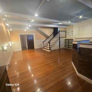 Grand Victorian mansion, great large reception room with many potential uses. Grand architectural futures. Hardwood floors. Architectural moldings. Three other spaces, lots of natural light. Many potential uses, previously used as a beauty salon. Includes 2 half bathrooms and a kitchenette.
