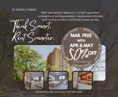 Looking for a place where city lights meet cozy nights? Rideau Tower is your ticket to elevated living—literally! Nestled in the heart of Edmonton, this high-rise haven offers stunning skyline views and amenities that make every day feel like a spa day. Whether you're cozying up in a one-bedroom or spreading out in a two-bedroom suite, you'll enjoy all the essentials—power, heat, and water—all included, plus the luxury of a dishwasher to save your hands from dish duty. But wait, there's more! Rideau Tower boasts elevators for easy access, a sauna to melt away stress, a fully-equipped fitness room to keep you in shape, and a rooftop sundeck where you can soak up the sun and maybe even perfect your tan. With video surveillance, your peace of mind is a given. Whether you're a busy professional seeking convenience, a student craving a central spot, or a small family wanting comfort and security, Rideau Tower is designed to elevate your lifestyle—no elevator pitch needed!