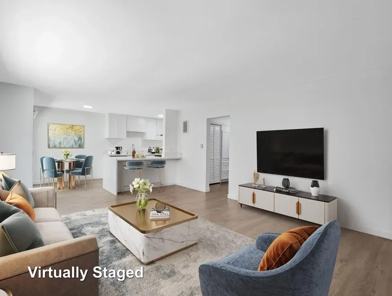Discover spacious, beautifully renovated 2-bedroom, 1.5-bath residences designed with modern comfort and style in mind. Each home features French Oak plank flooring, energy-efficient stainless-steel appliances, LED lighting, quartz countertops with elegant waterfall edges, and in-unit washer and dryer in select apartments—everything you need for contemporary living.