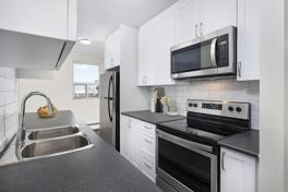 Our resident suites feature spacious studio, 1 and 2 bedroom suite designs that include re-finished hardwood flooring in living rooms and bedrooms, and stone-like ceramic tile in the kitchen. Kitchens are equipped with elegant white cabinetry, self-closing drawers, and four stainless-steel appliances.