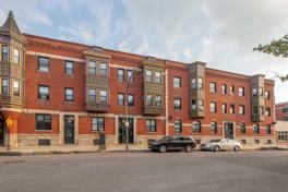 Overlooking both lively 57th Street and the colorful homes along South Harper Avenue, this red brick building adds to the eclectic streetscape with projected black stone bay windows that provide additional space, light and air to the interiors. The influence of the Arts and Crafts Movement can be seen in simple terracotta detailing along the exterior, while older European traditions are revealed in the rusticated stonework at the base and corners of the facade. The property stands in a convenient location close to Jackson Park, Lake Shore Drive and public transportation into the city.